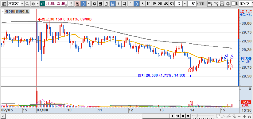 비만치료제 관련주들은 항상 관심을 줘야한다. 비실비실 대는 것 같지만 반등 관성이 좋음. 아래 지지선 눌림목에서 올커니! 하고 잘 잡았다! 매수를 했는데... 조금 뒤 개미털기에 당했다. 수수료 손절 후 자기 갈 길 잘 가더라.