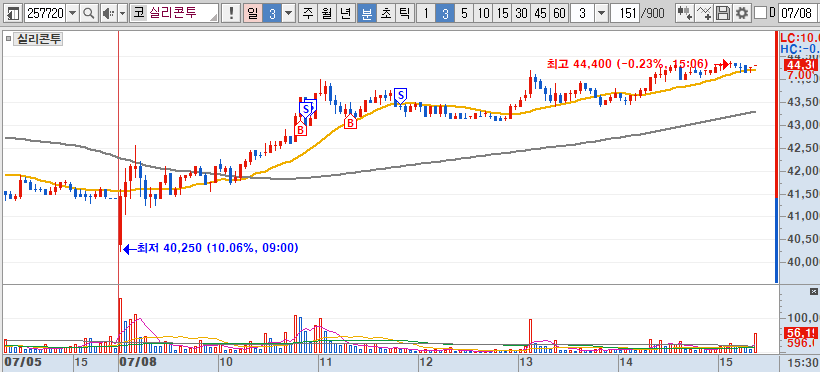 일봉이 많이 하락했다가 반등이 들어오는 수급이었었나. 워낙 K-뷰티 대장주였고 밀리는 모양이 없어 오늘 쭉 가져가볼까 하고 진입. 다시 생각해보니 근거 없는 매수 같아 다시 매도. 아쉬운 마음에 다시 매수. 얻은거 없이 그냥 다시 매도.