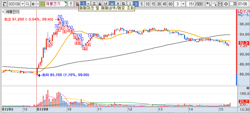 초반 에코 형제들 달리는 모습에 지켜보다가 무지성 프로그램 매수로 판단되어 무작정 비중 베팅. 빠르게 중익절치고 눌림 기다리다가 다시 매수하고 보니 힘이 많이 빠진 것 같아 약익절 매도.