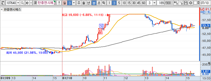ESS 관련주로 한중엔시에스 상따 유지하길래 고점 눌림목에서 잡았다가 바로 중손절 당함. 고점은 비중 자제.