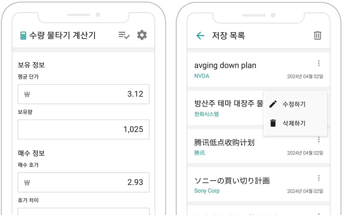 제가 만든 수량 물타기 계산기 앱을 소개합니다.